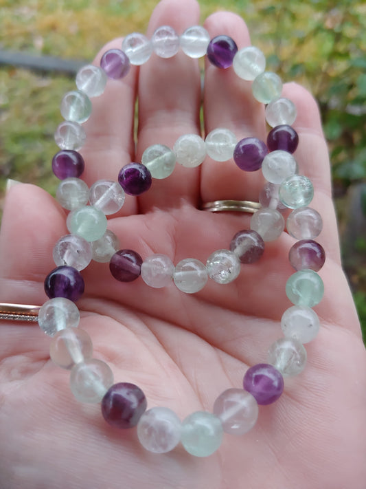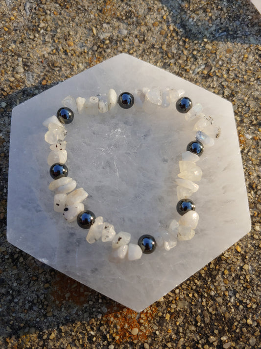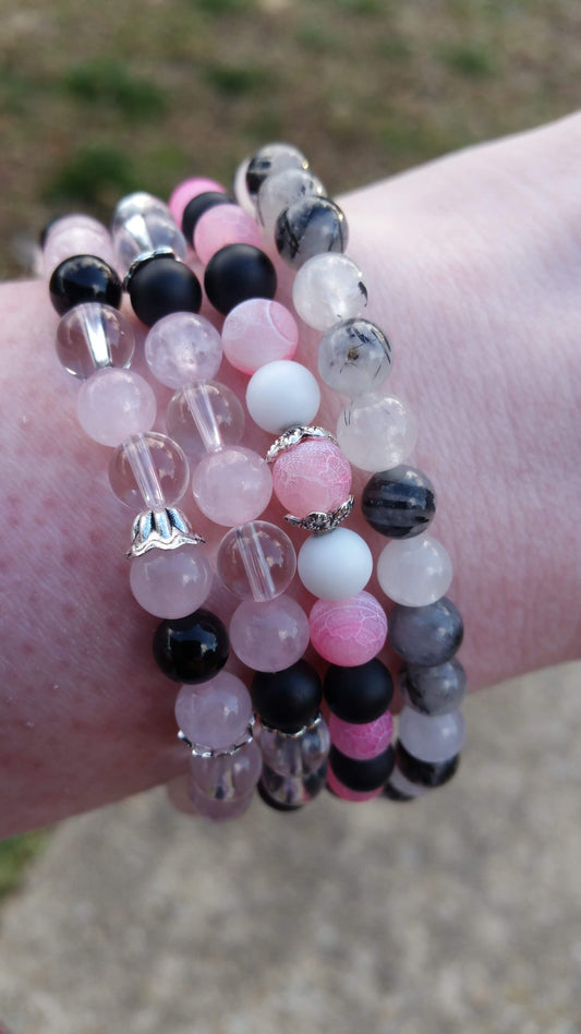 Rose, Clear Quartz & Black Onyx Crystal Bracelet