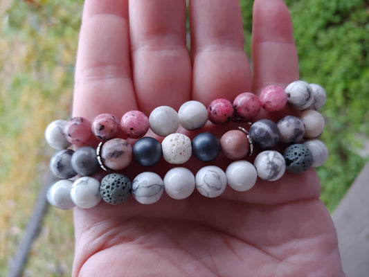Zebra Jasper, Hematite & Lava Crystal Bracelet