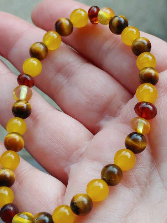 Tiger's Eye, Amber, Yellow Jade Crystal Bracelet