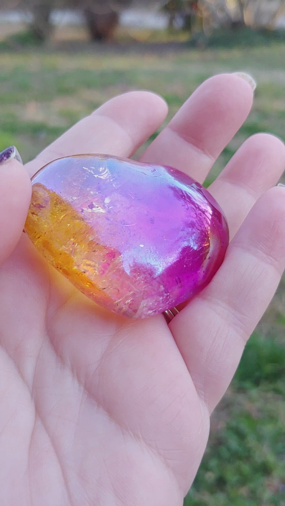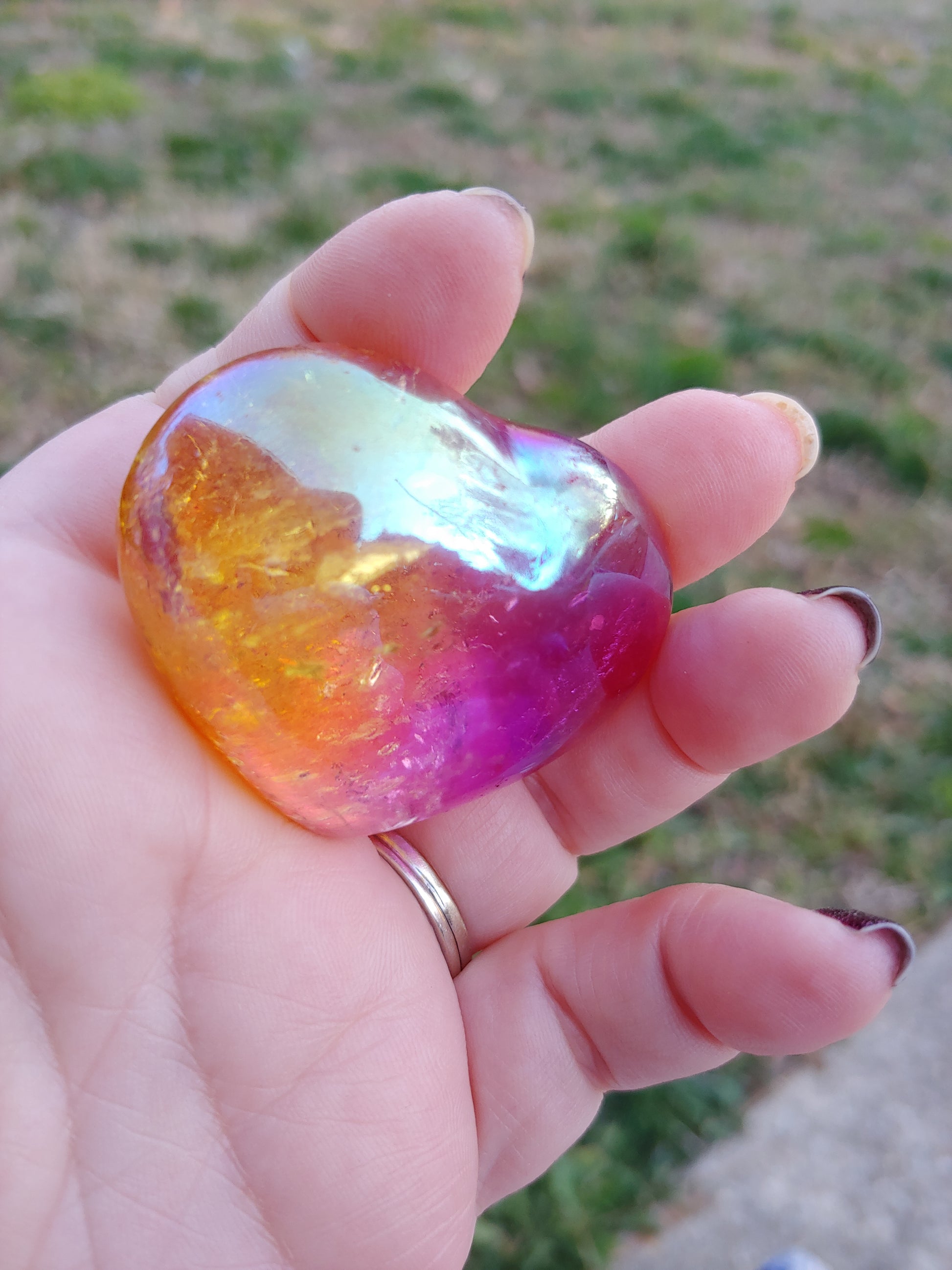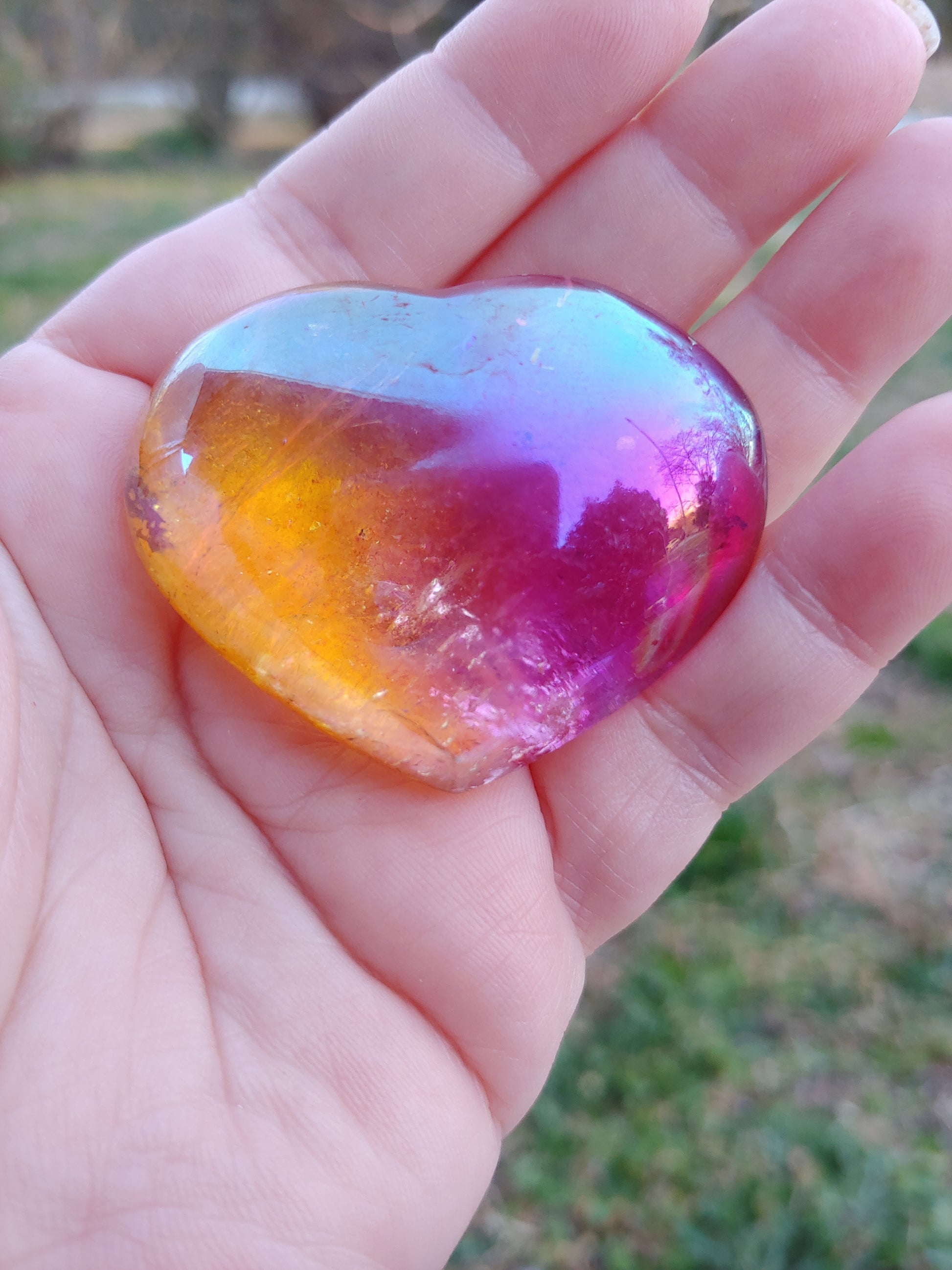 2 Color Aura Clear Quartz Heart