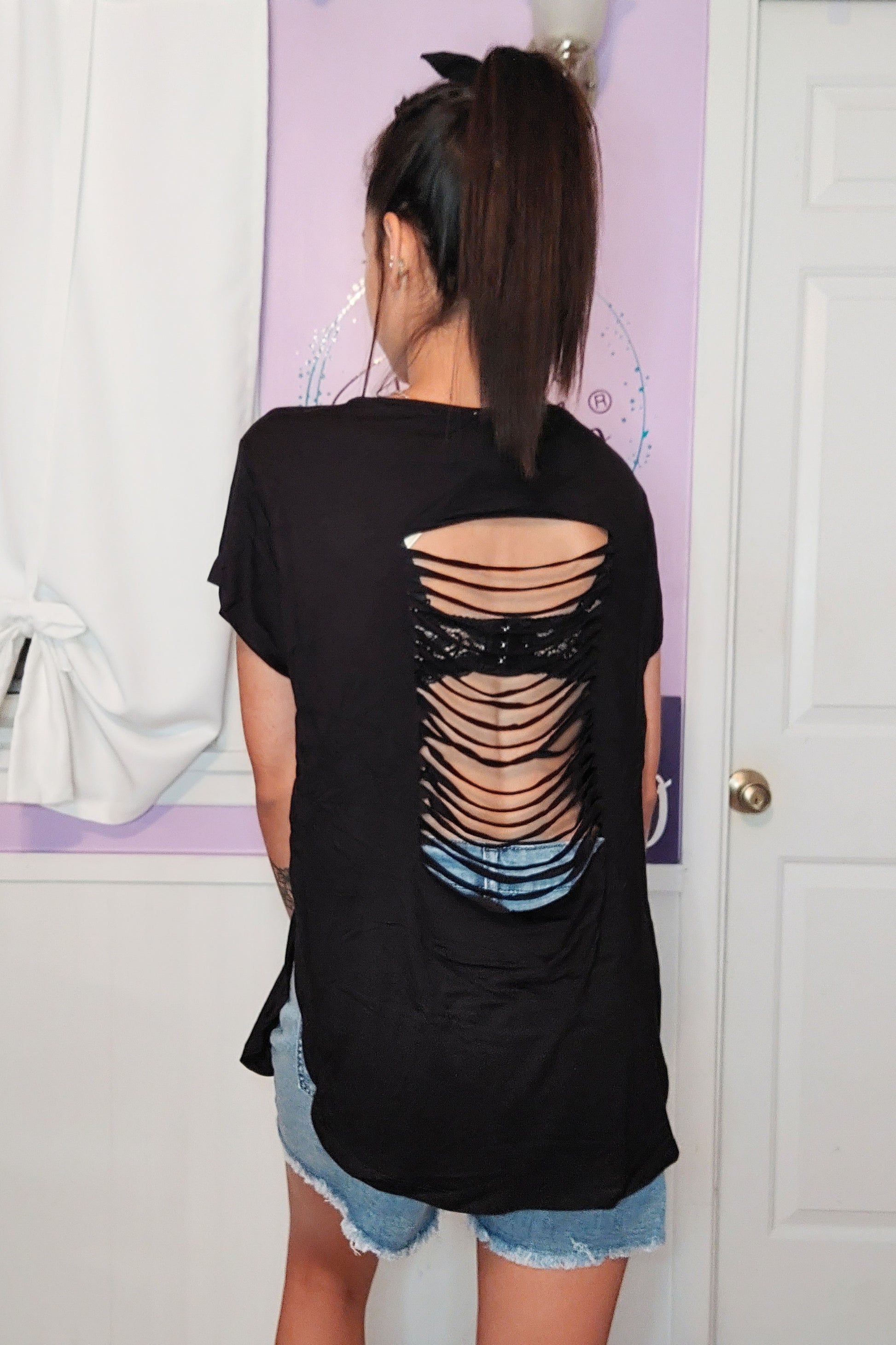 Our newest solid tee with a cut out back and split sides. Perfect with workout leggings, jeans or a fitted skirt. Also in Hot Pink.