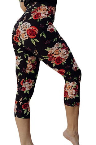 Black Rose CAPRI Yoga Leggings (Super Soft) S-XL