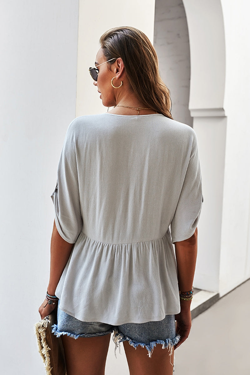 Light Grey Button Sleeve Top