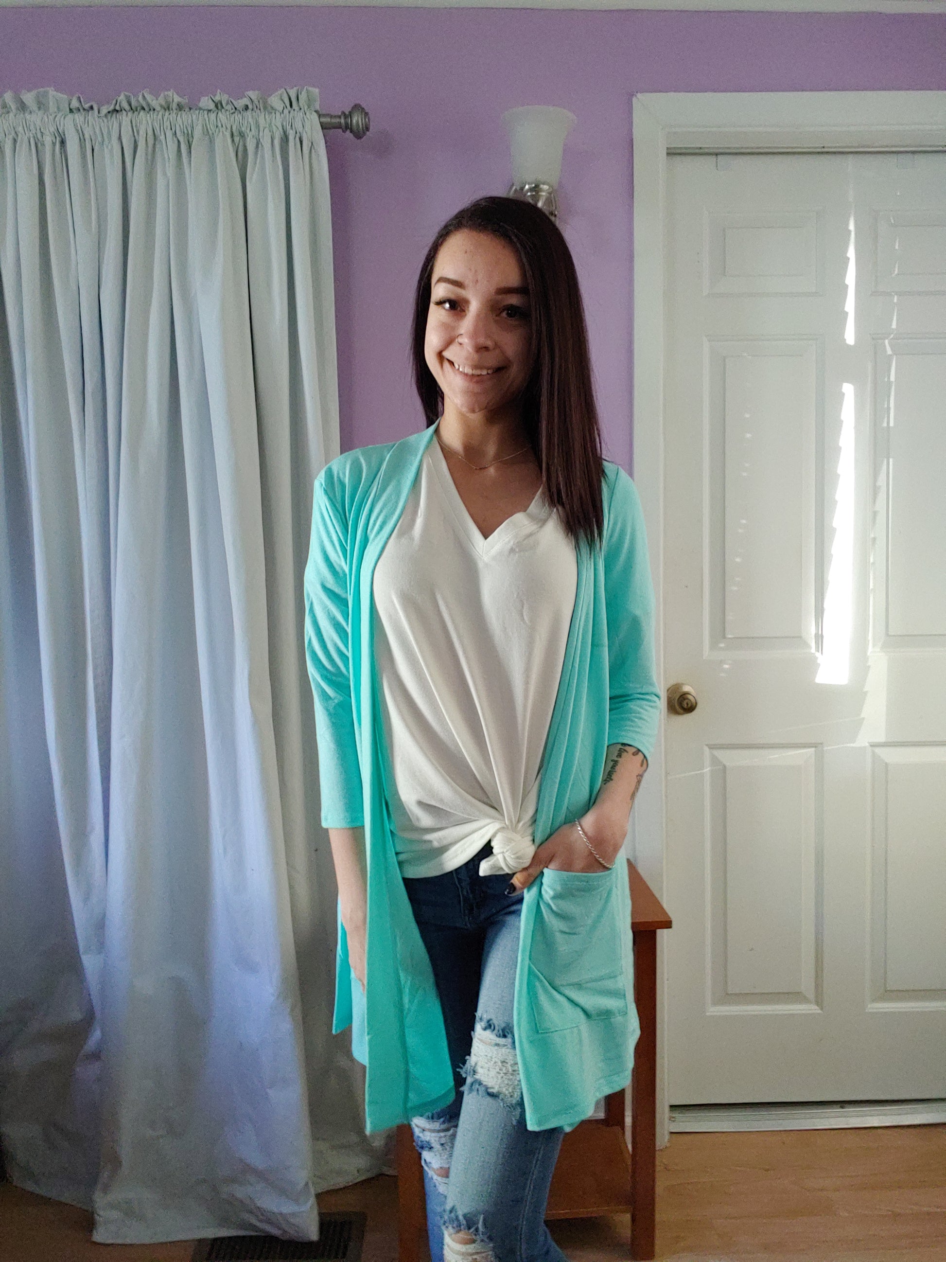 Perfect for spring, this cardigan is a stretchy knit with pockets and is a must have for the coming weeks! Several colors.