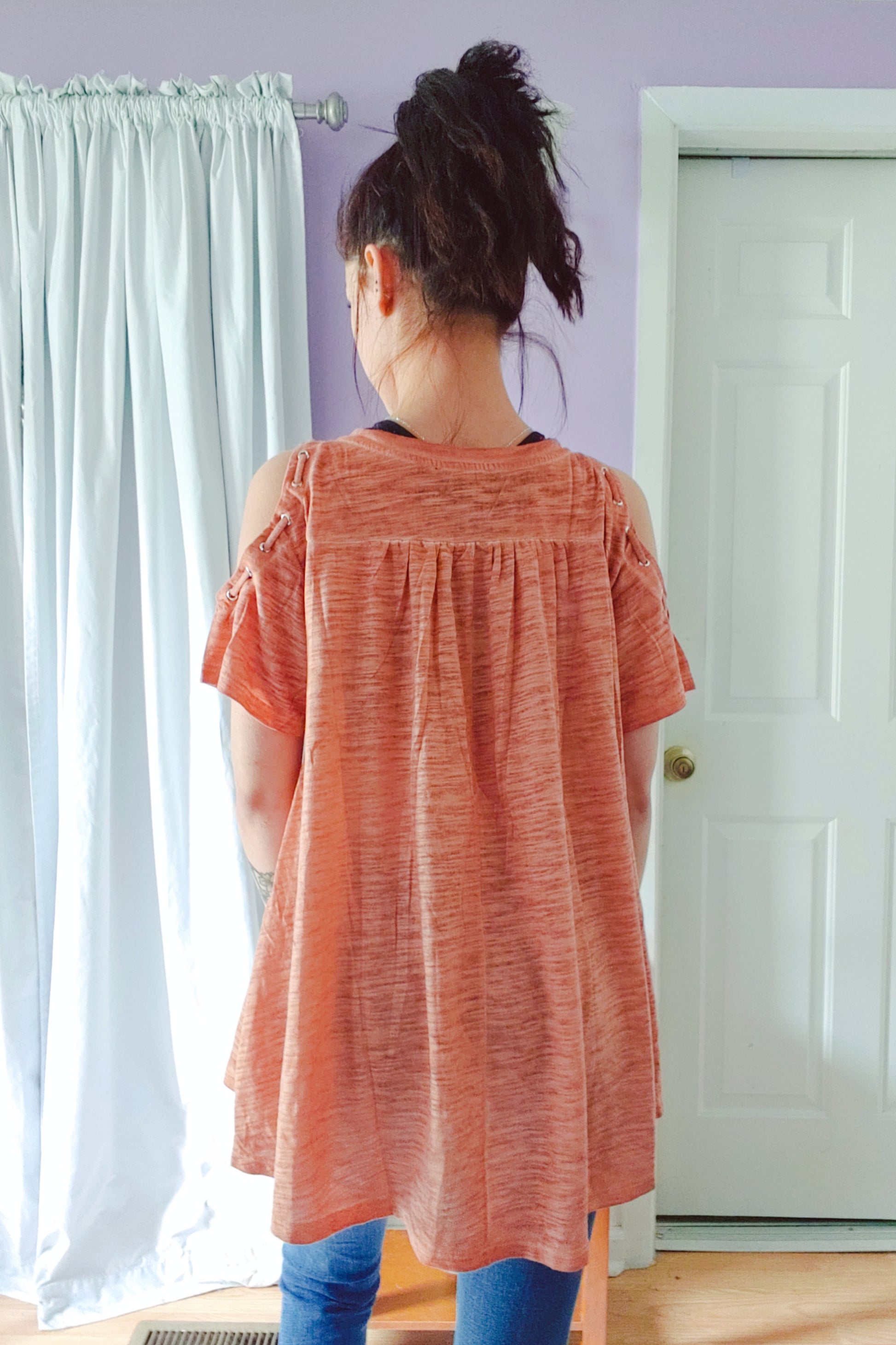 Rust Two Tone Cold Shoulder Top