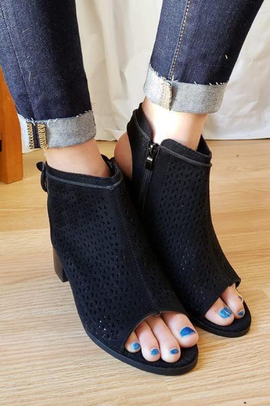 Tracy Velvet Peeptoe Bootie in Black